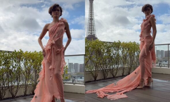 Zendaya arrasa em Paris com vestido de flores destroyed